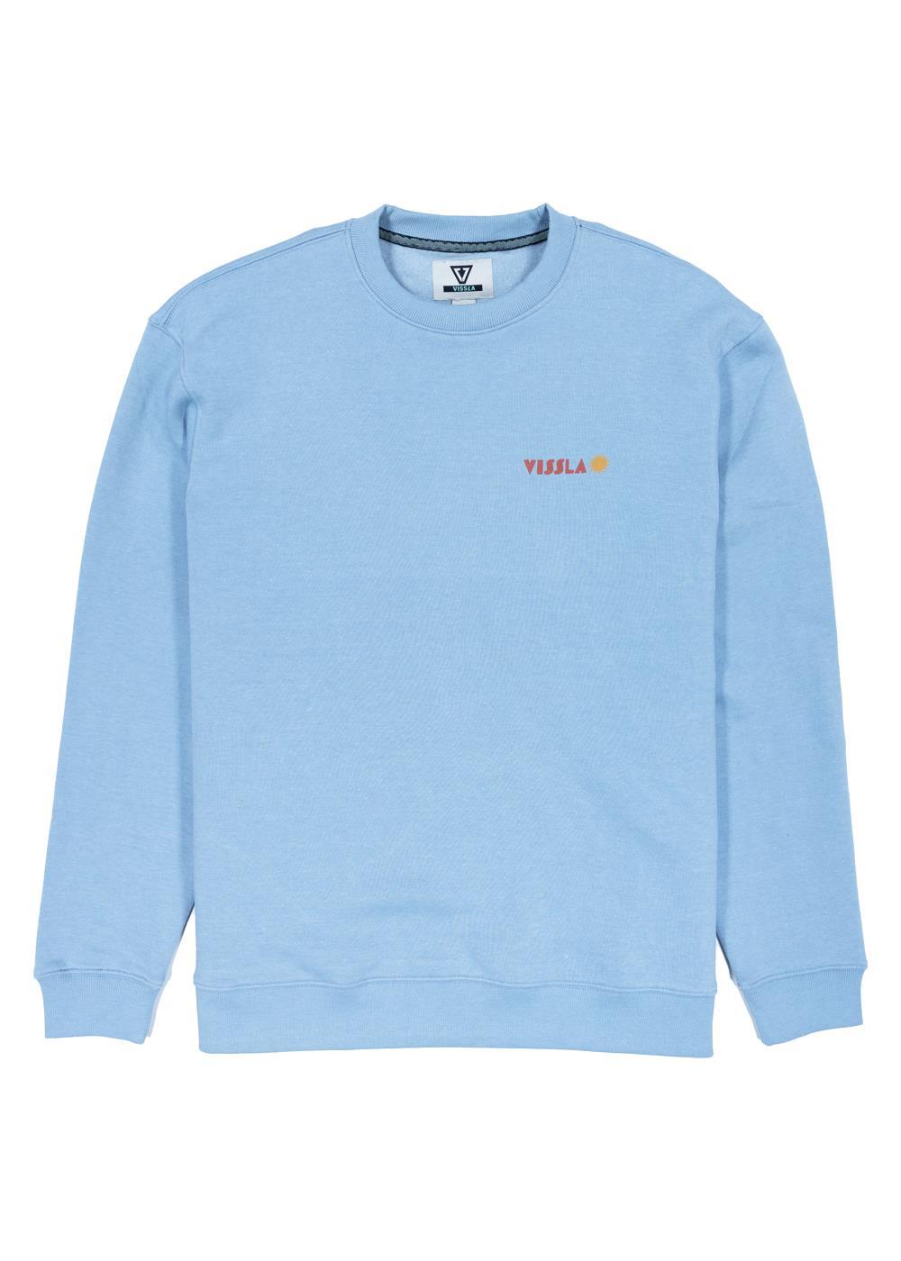 Cotton and recycled polyester 310gsm crew neck fleece. Styling includes screen printed art and super soft wash.