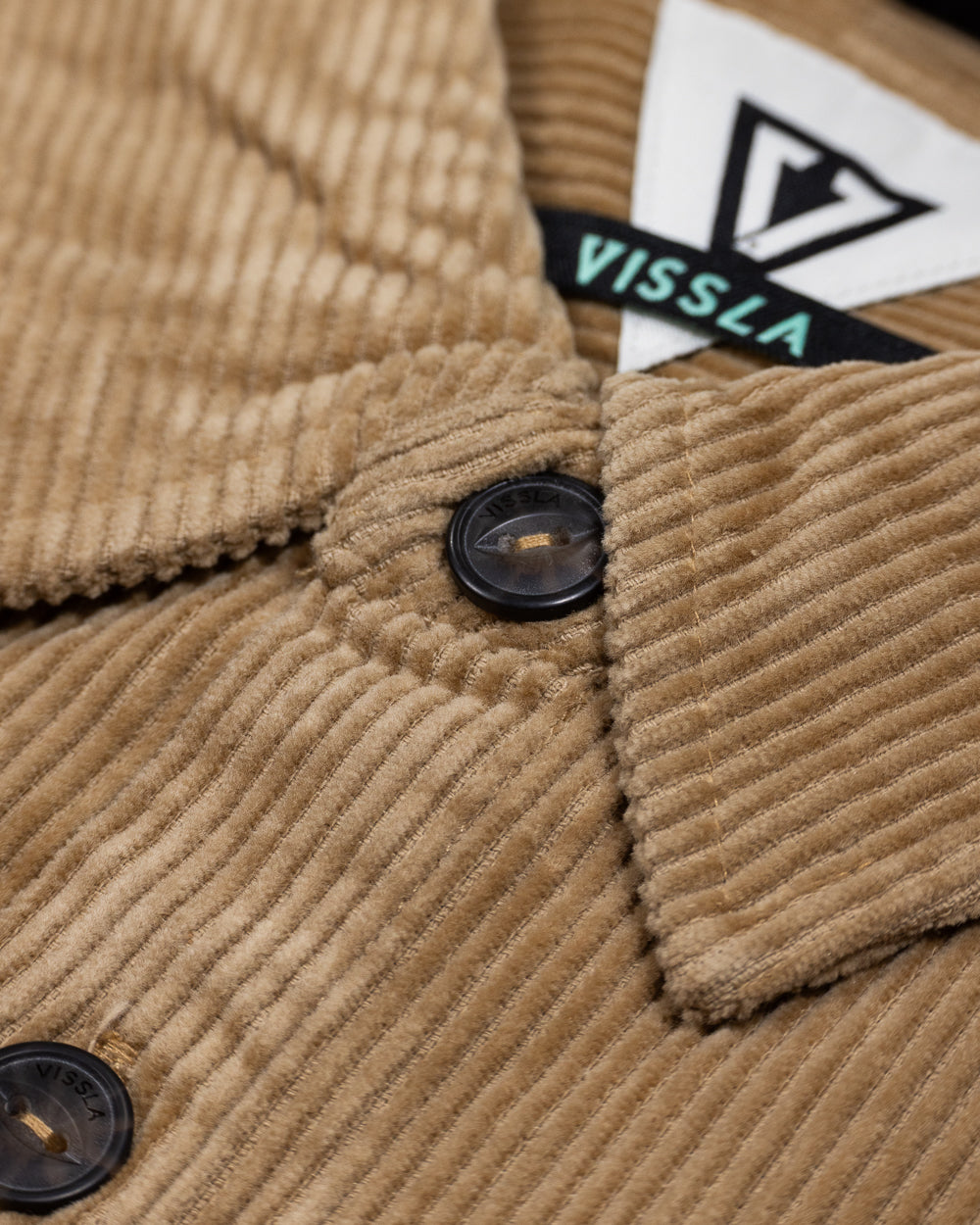 90' inspired style including large Wale stretch organic cotton corduroy shirt. Vissla Logo Chest patch.