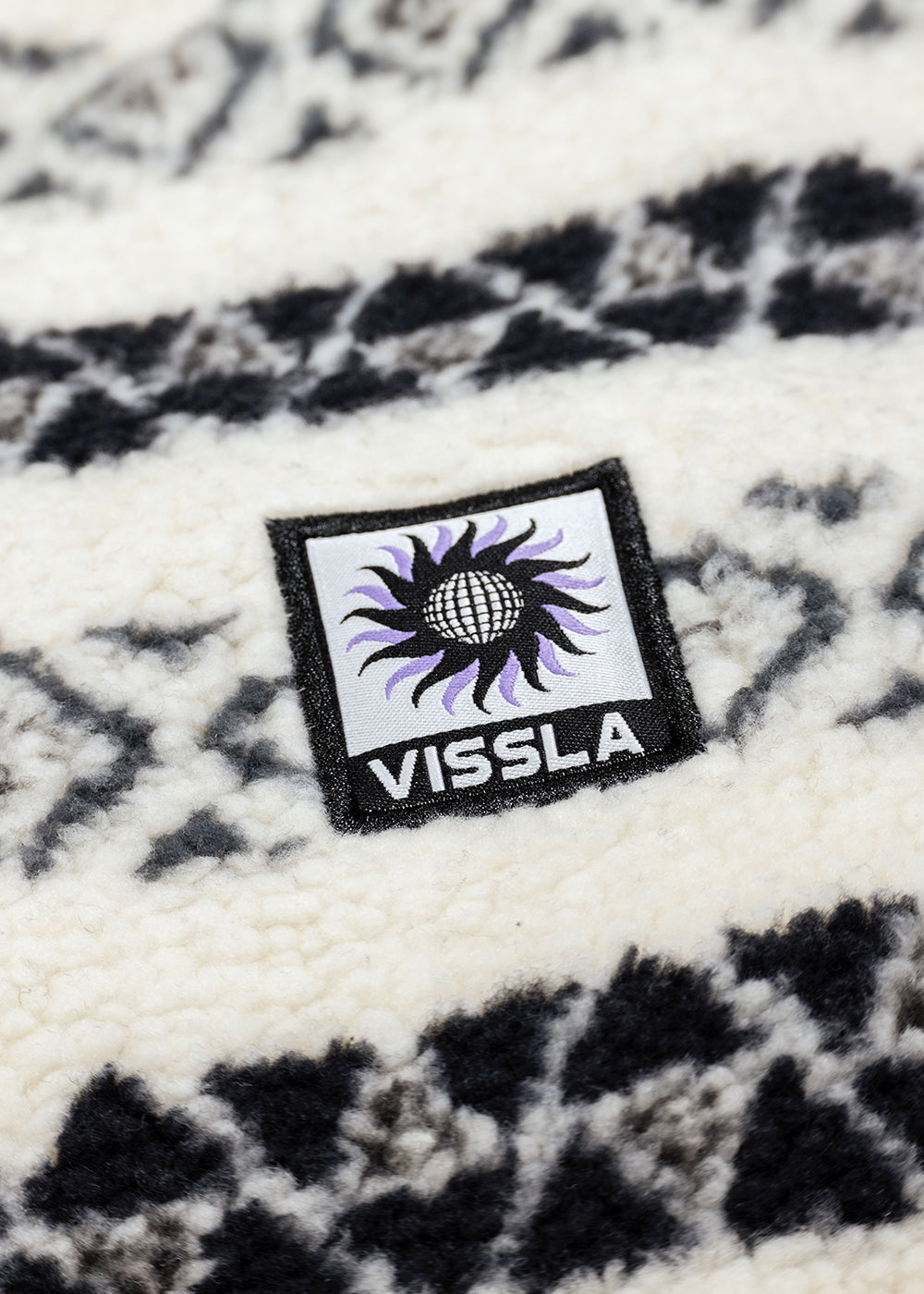 Heavy Weight Bonded Recyled Polyster Sherpa And Polar Fleece Fabric. Front Half Zip Zipper Opening.Lycra Binding At Writs Hem And Collar. 2 Hands Pockets. A Vissla Woven Patch As An Identificaton On The Front Chest.