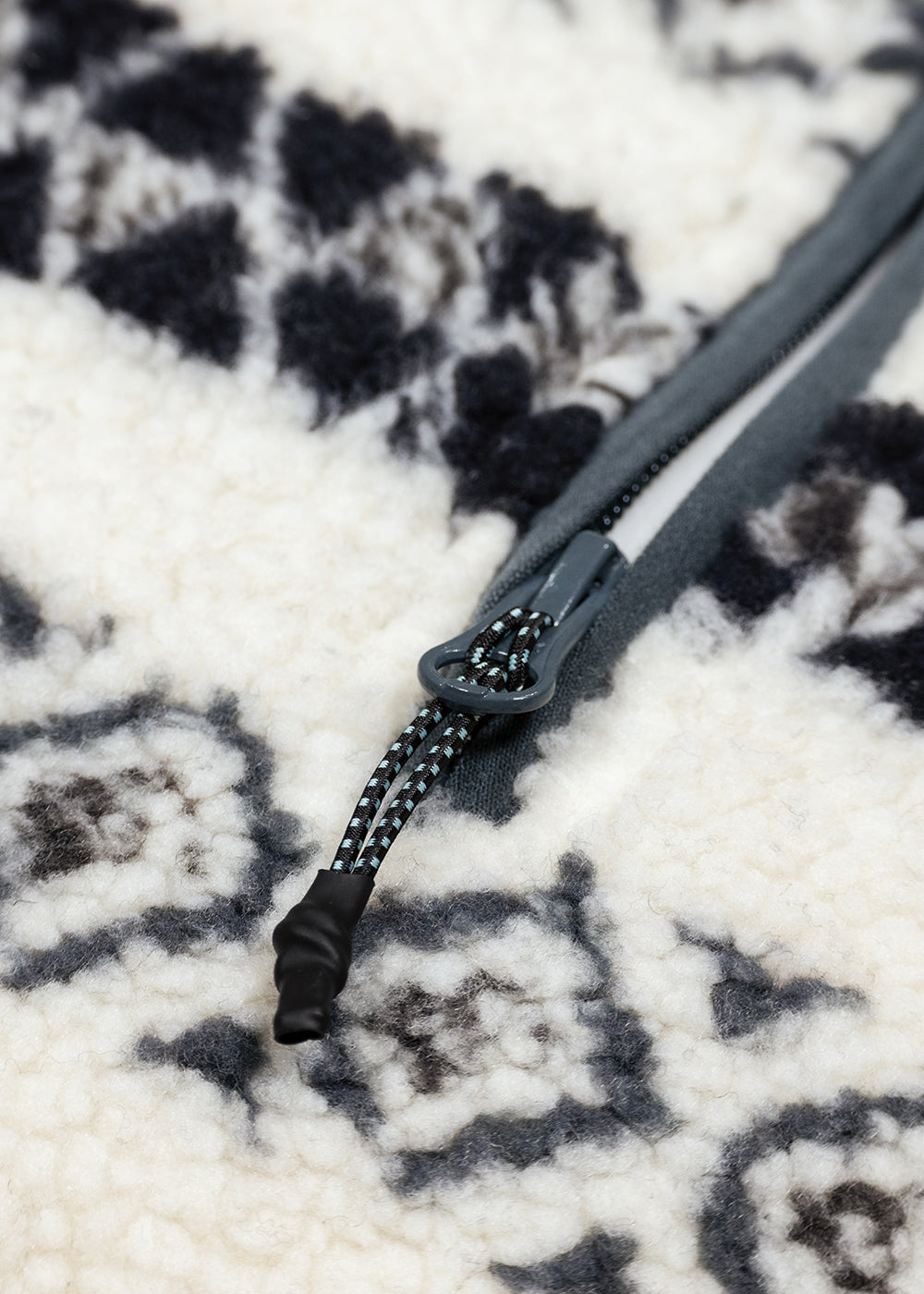 Heavy weight bonded recyled polyster Sherpa and polar Fleece fabric. Front half zip zipper opening.Lycra Binding at writs hem and collar. 2 hands pockets. A Vissla Woven patch as an identificaton on the front chest.