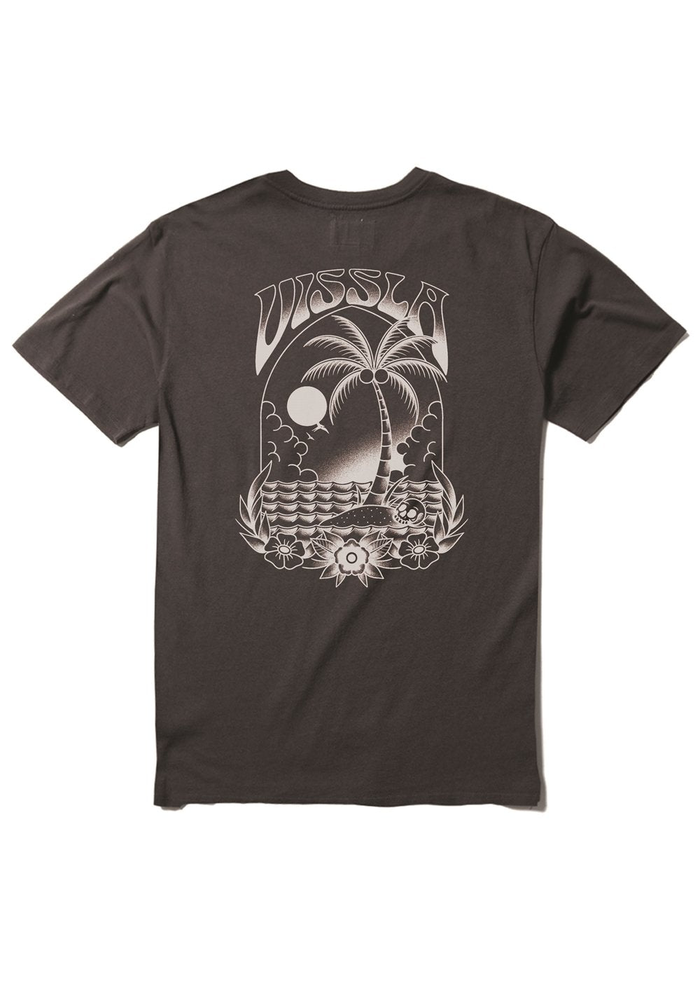 Stranded in style. This regular fit crew features garment pigment dye for sun-faded appeal. Back screen print adds graphic detail, while the soft wash creates instant comfort. 20 singles with side seam woven label.