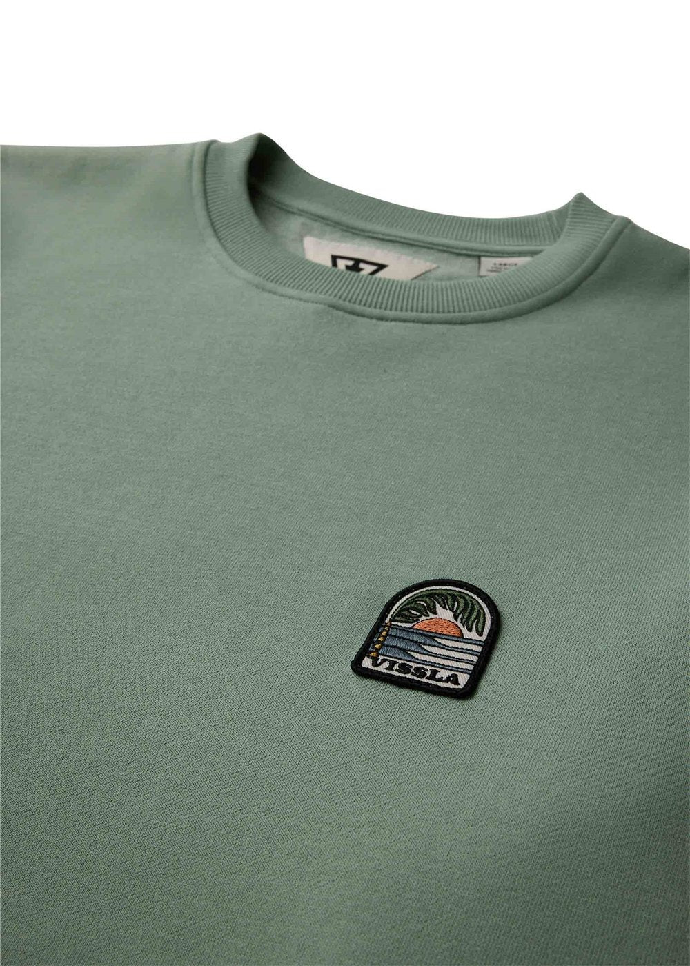 Cotton/Recycled Poly 280 Gsm Garment Dyed Crewneck Fleece With Embroidered Logo Patch Unique To Colorway. Garment Wash.